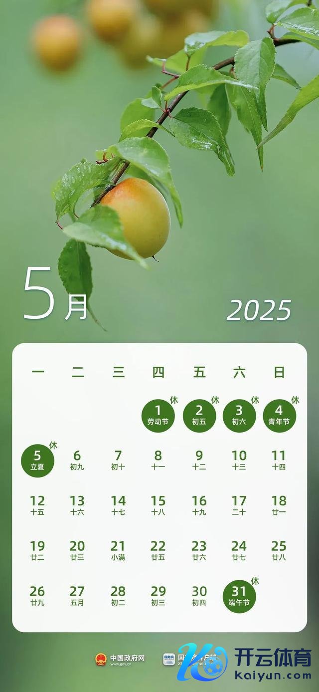 算下来,本年“五一”有5天长假,以五一假期运转(5月1日-5日),以端午假期戒指(5月31日-6月2日),加上周末,总共这个词五月只用上19天班,妥妥打工东说念主们的“梦中情月”!