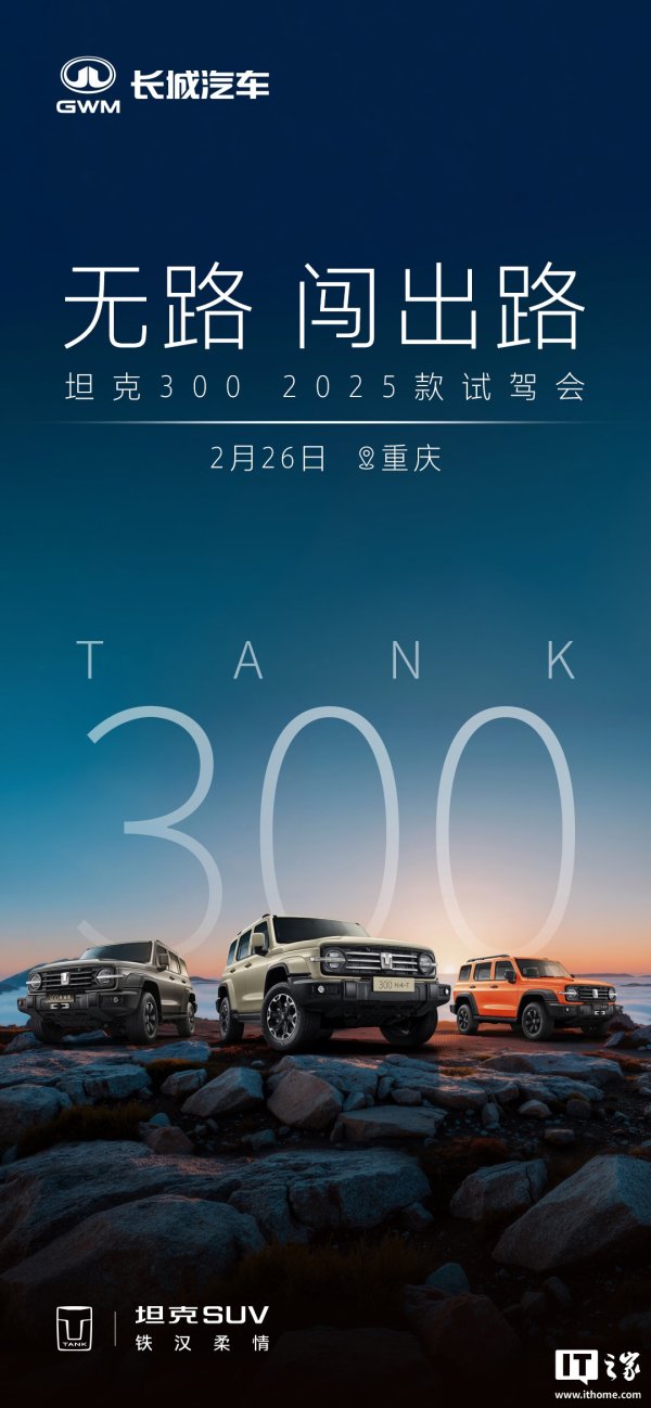 IT之家 2 月 25 日音问,长城汽车现已发布 2025 款坦克 300 越野车官图,该车将于未来亮相,提供汽油、柴油、Hi4-T 三种能源系统,主要在内饰方面进行调遣,外不雅方面保执不变。 看成相比,当今在售的坦克 300 提供 2.0T 汽油发动机、2.0T 汽油发动机 + 48 伏轻混系统、3.0T V6 发动机 + 48 伏轻混...