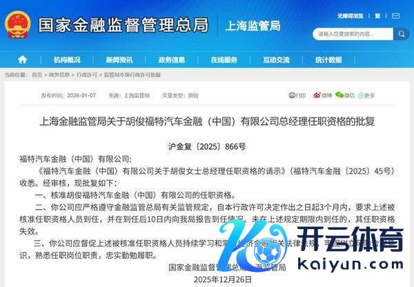 中国网财经1月8日讯 昨日,上海金融监管局发布相关批复,核准胡俊福特汽车金融(中国)有限公司(简称“福特汽金”或“福特汽车金融”)的任职履历。以下是相关批复正文: