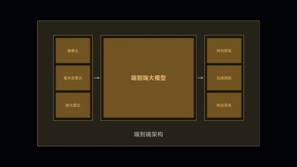 输入端传感器将信息平直输入一个AI大模子,平直在输出端输出行驶号令的,即是端到端。其最中枢的特质即是,全部数据处理、权衡、野心、舍弃的经由只用单一的AI大模子。