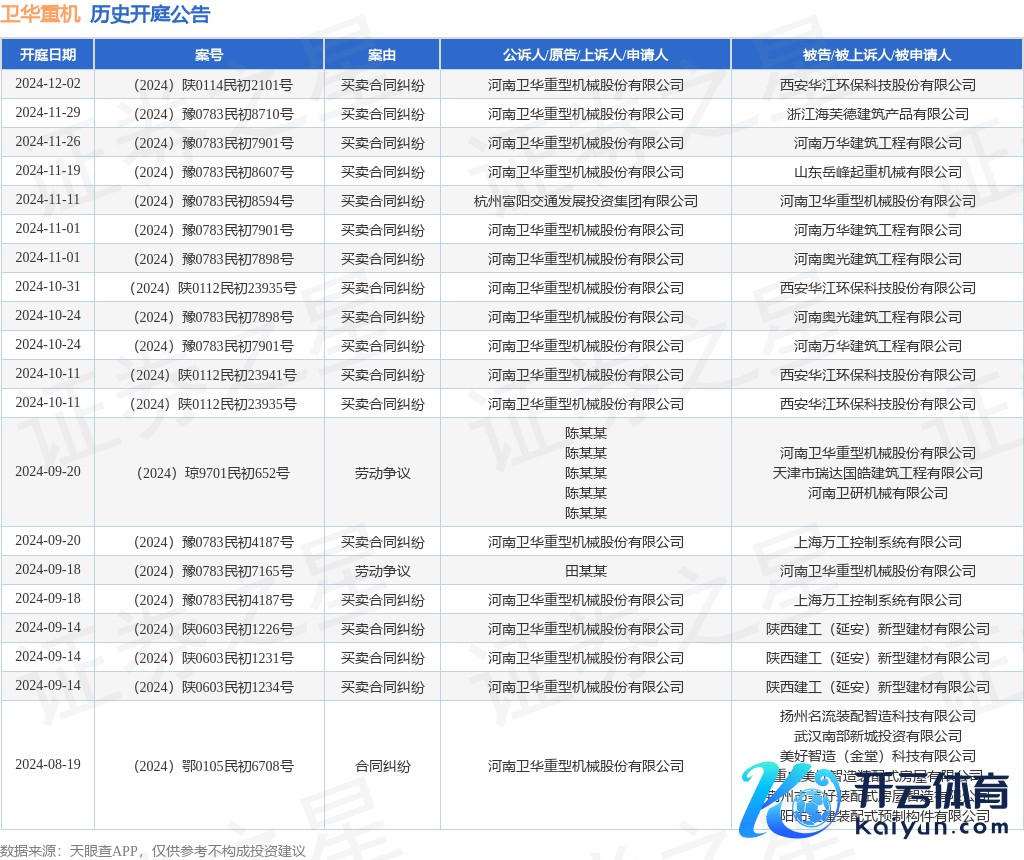 本站音讯九游体育娱乐网,凭据天眼查APP涌现,近日公布了一则河南卫华重型机械股份有限公司算作原告/上诉东谈主的开庭公告,详备本体如下: