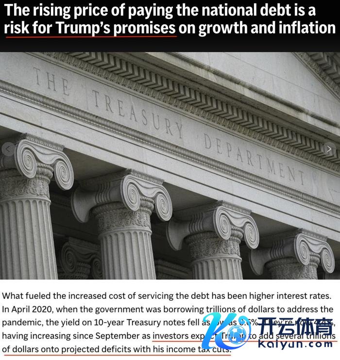 △好意思联社:偿还国债老本的飞腾对特朗普冷漠的促增长和降通胀承诺组成了风险,但他的政府自己也可能将加剧好意思国债务包袱,因为投资者揣度特朗普将通过减税等递次为好意思国再添数万亿好意思元财政赤字。