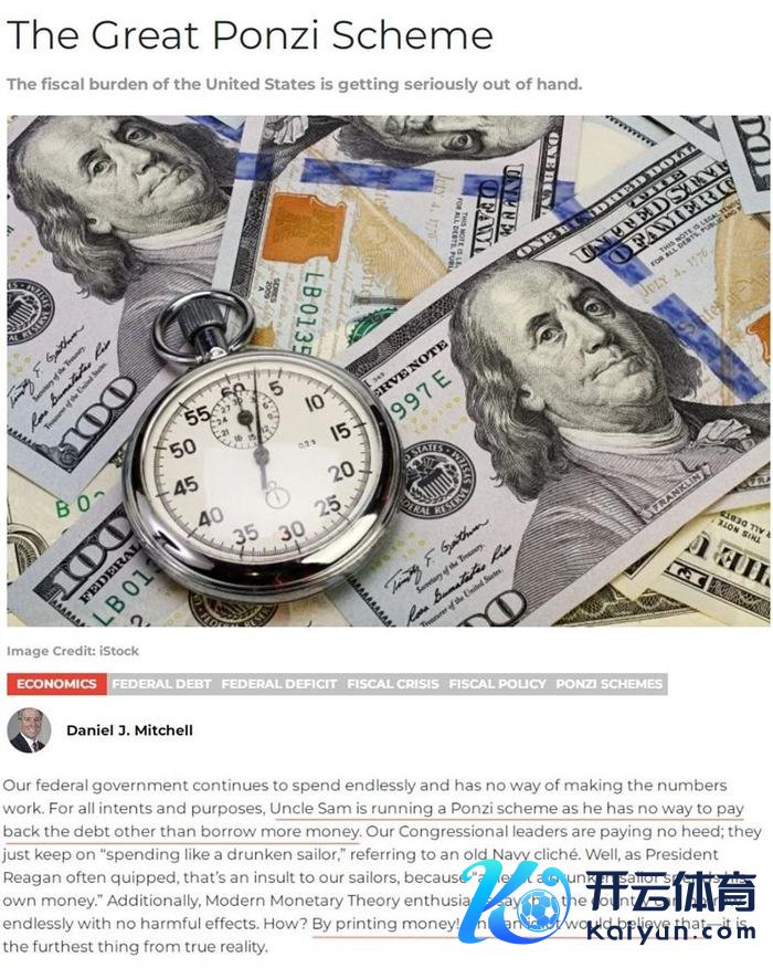 好意思国经济学家丹尼尔·米切尔曾发文指出,“好意思债炸弹”正在滴答作响,不加法规终会爆炸。好意思国政府独一需要作念的即是“节食”,但它却在不绝大肆用钱。这证实好意思国正在筹画一个雄伟的“庞氏骗局”,因为它除了借更多的钱以外莫得其他主义还债。