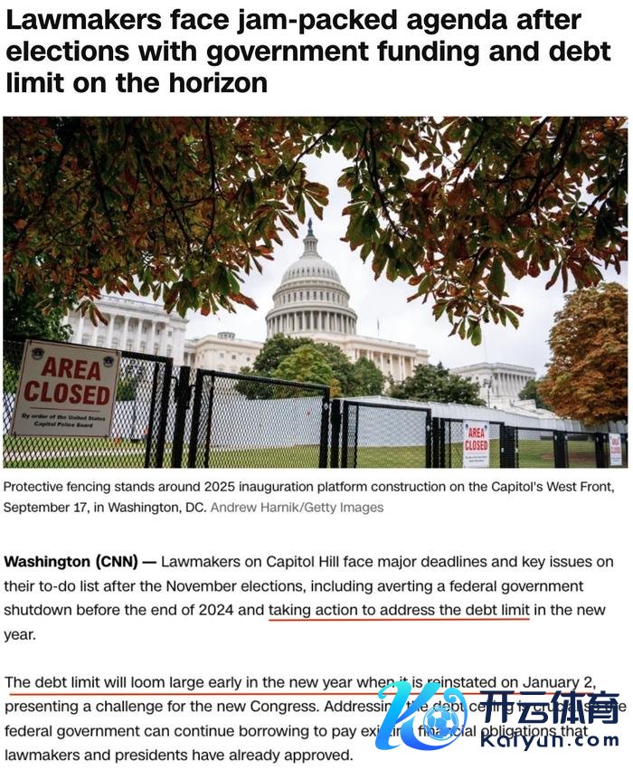 △好意思国有线电视新闻网:国会议员们在11月大选背面对一些关节的待业绩项,包括在年底之前幸免联邦政府因缺钱关闭,并在新的一年采选行动处罚债务上限问题。定于来岁1月2日再行奏效的债务上限将成为新一届国会面对的一大挑战。