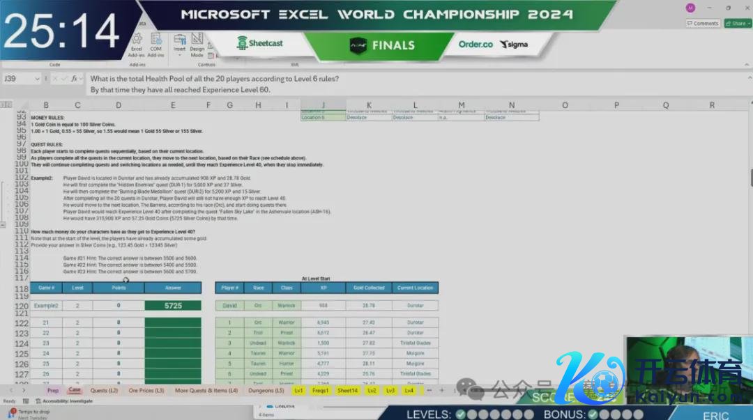在这场比赛中,《魔兽寰宇》中的经典元素被升沉成了一组复杂的 Excel 数据。在传统的《魔兽寰宇》游戏中,玩家们需要经管我方变装的教授、装备、手段和搏斗情景等,而在这场 Excel 比赛中,选手们一样需要追踪和经管这些属性。率先,玩家们只需要容颜基本的数据——如教授值(XP)和金币,但跟着比赛的进行,选手们还需要进一步经管更为复杂的游戏属性,如护甲、才调、敏捷等,致使是变装的调理才和洽伤害。