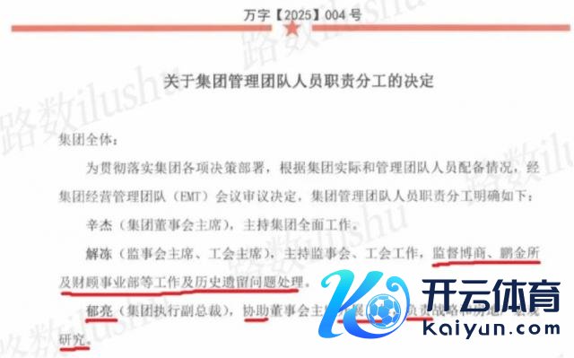 而另一处是"监事会主席解冻要负责监督博商、鹏金所及财顾行状部等职责及历史留传问题处理"。解冻其东谈主,自 2014 年起任公司监事会主席,证据这次最新职责单干,解冻的位置还是高过郁亮,成为万科二把手的存在。