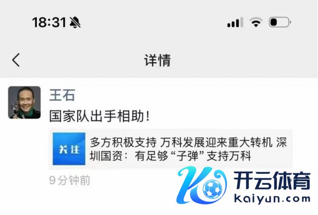 而此前深圳市国资委负责东谈主强调有实足"枪弹"维持万科,万科创举东谈主王石还在一又友圈转发称"国度队动手相助!"