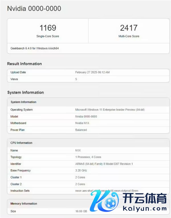 快科技3月2日音信,英伟达与联发科协作开采的首款Arm架构PC芯片NVIDIA N1X的工程机现身Geekbench跑分平台九游体育娱乐网,收货却"不太理思"。