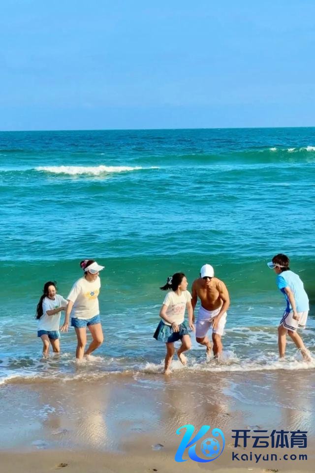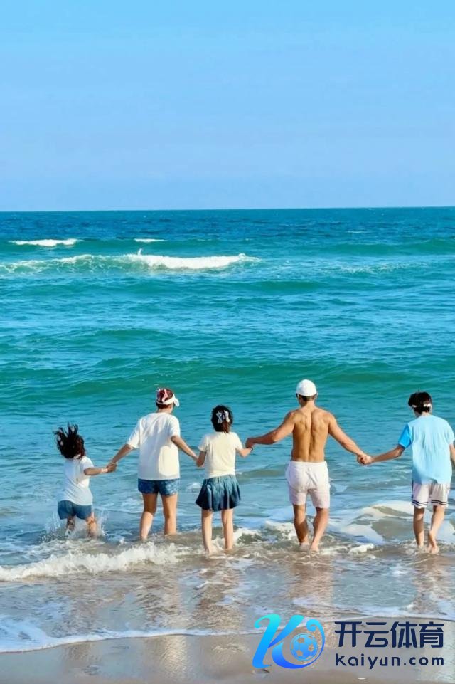 这碧海蓝天地,一家东说念主手牵手踏着浪花玩耍。爸爸刘畊宏躯壳谨慎,不愧是长年跳操健身的。