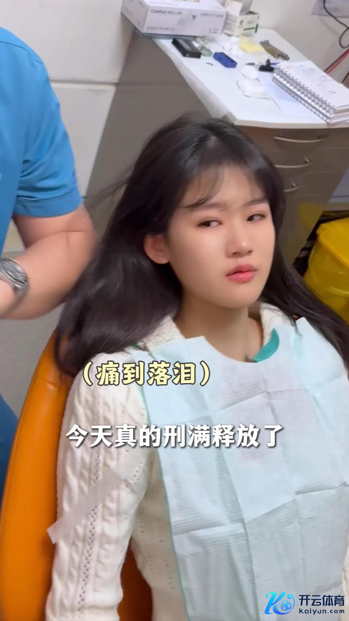 视频里,贝儿刚运转躺在调养椅上还挺承诺,盼了四年终于能自如了,可当医师真实运转操作,又吹又冲又剪的时刻,那份酸爽劲儿上来,贝儿顷刻间就破防了,疼得坐起来直抹眼泪,还喊着嗅觉牙齿都要被拆掉了。