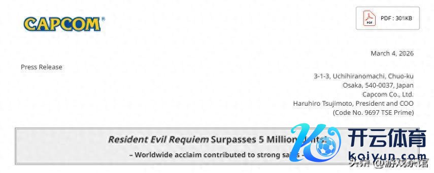 昨天(3月4日),卡普空于其投资者联系(IR)官网发布公告,告示《生化危境9:安魂曲》(以下简称《生化危境9》)销量负责冲突500万份。