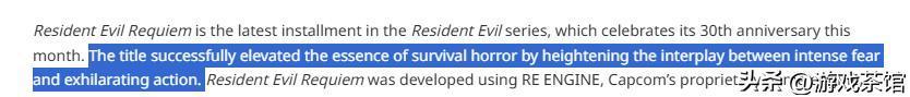 卡普空在这则战报中对《生化危境9》的成效作念了归因,其合计,本作能够获得这一获利的主要原因在于:“成效地进步了生涯恐怖游戏的精髓,强化了极致的怯生生感与刺激的行动体验之间的无缺交融”。
