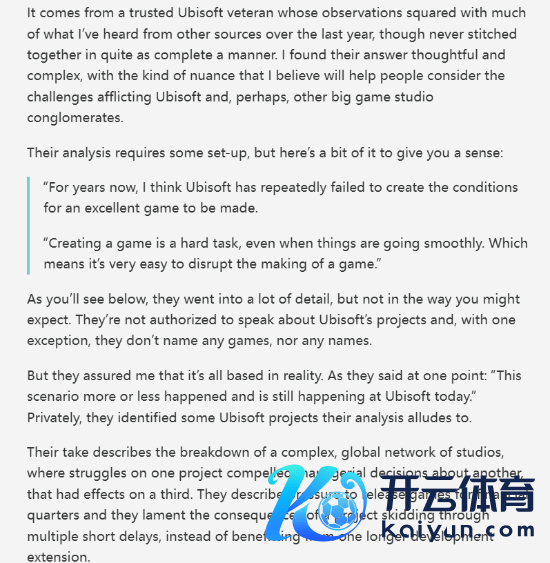 不外即便处境广大,这位前建造者也莫得全都含糊育碧的异日。他以为,唯有找对场地,这家也曾的游戏巨头,依然有契机推出爆款游戏,已毕东山再起。