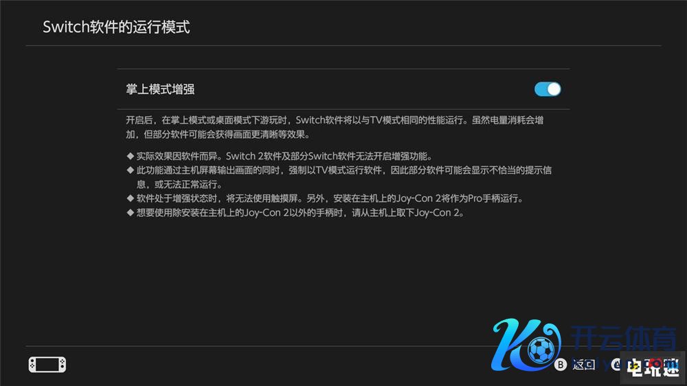该功能被任天国称为Switch2“便携风物增强”功能,该功能不错令Switch2的掌机风物初始Switch初代游戏时,也以TV风物全性能初始。不外该功能仅限于Switch初代游戏,Switch2专用游戏并不适用。同期该功能开启也当然会加多游戏主机的功耗,贬低Switch2的电板续航时分。同期由于所以TV风物初始初代游戏,该风物下流戏也不扶直Switch2的触摸屏操作。
