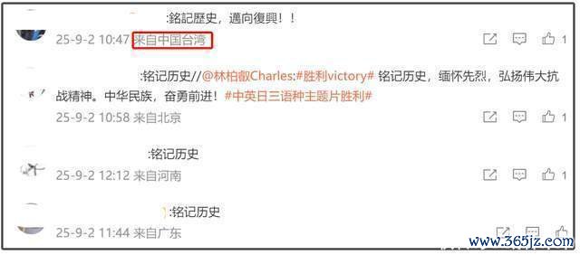 关联词当今发声的台湾省明星未几,第一个转发的是台湾省艺东说念主林柏叡。他转发抗战告捷记载片,并配文:“”紧记历史,记念先烈,发挥伟大抗战精神。”