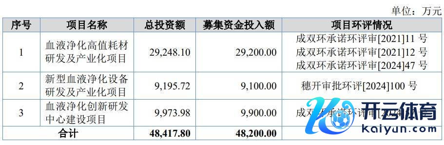 睿健医疗原拟召募资金48,200.00万元,用于血液净化高值耗材研发及产业化技俩、新式血液净化开辟研发及产业化技俩、血液净化篡改研发中心诞生技俩 。