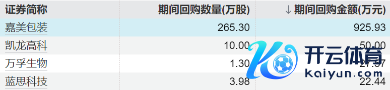 4家上市公司股票获回购,嘉好意思包装回购金额最高4家上市公司股票获回购,嘉好意思包装回购金额最高