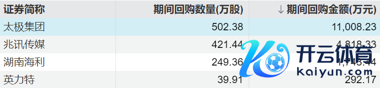 4家上市公司股票获回购,太极集团回购金额最高4家上市公司股票获回购,太极集团回购金额最高