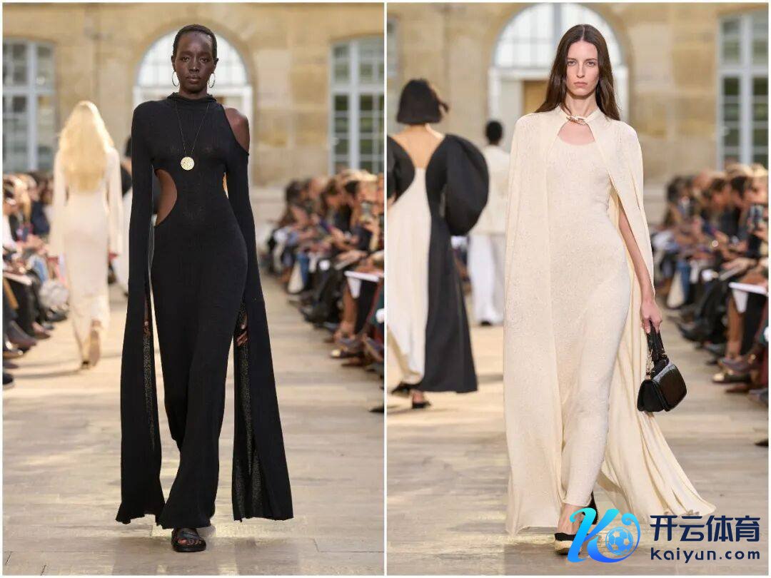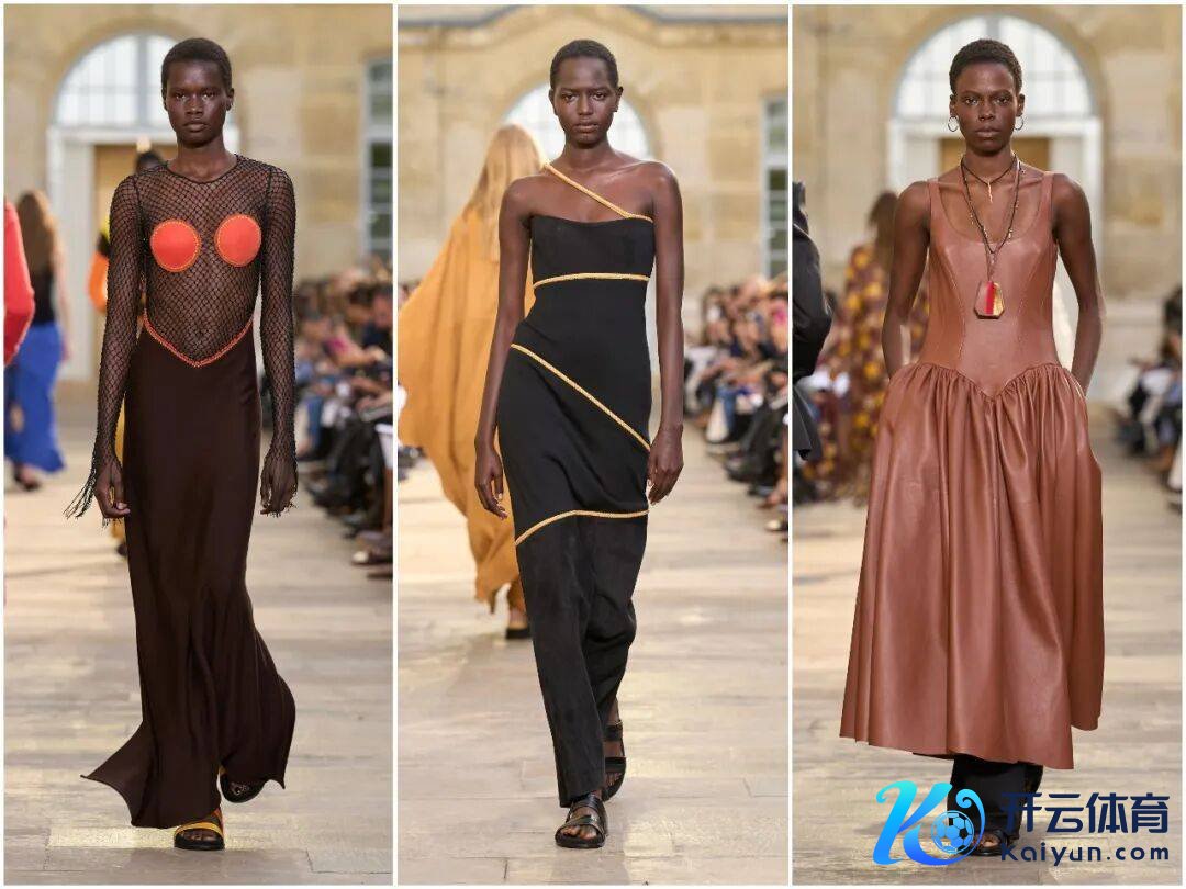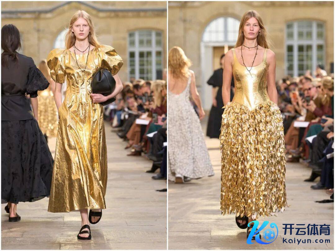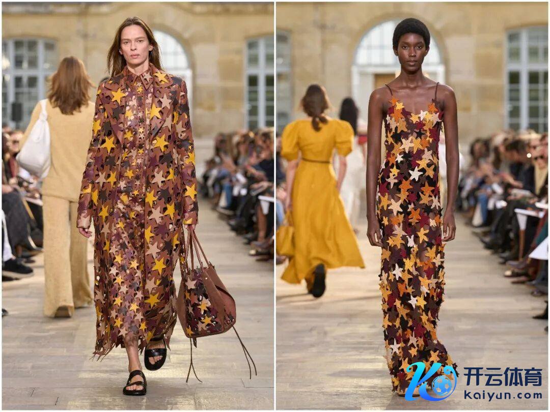 本季工艺的中枢,是手工与科技的高明会通。激光切割时间已毕了叶片、星片等精确造型,提高后果的同期保证细节无缺;手工钩织、缝制则保留了温度,让每一件服装皆有匠东说念主图章。举例“星星”裙的皮革星片,先由机器精确实割,再由匠东说念主手工缝合,兼顾后果与质感;“女皇”裙的皮革花草,每一朵皆历程手工塑形,呈现当然的弧度。
