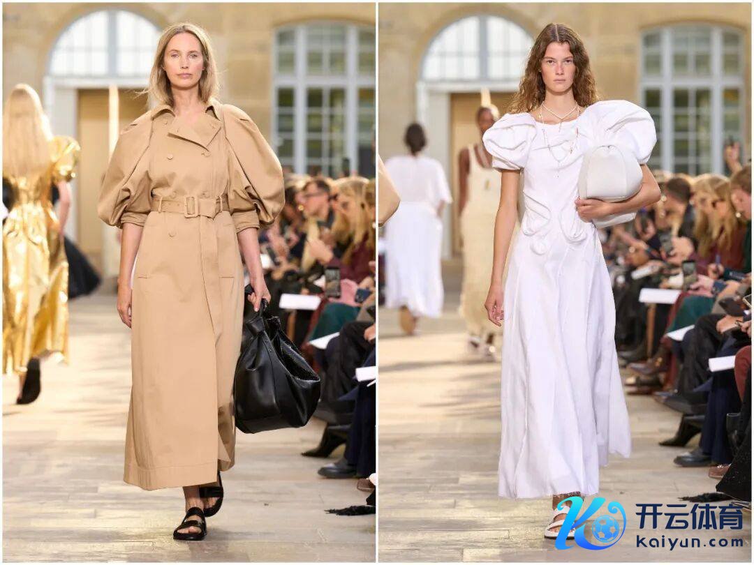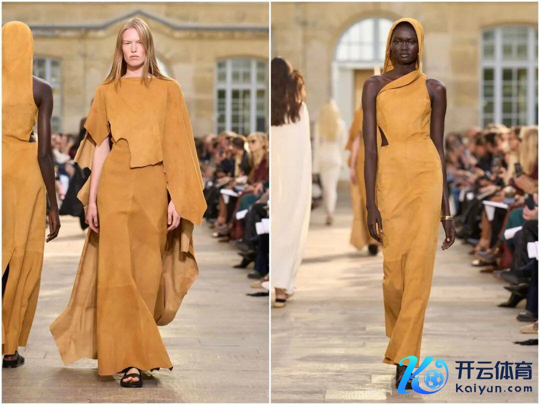 Gabriela Hearst本季的环保得意,是系列最坚实的底色。全系列97%的面料来自再生纤维、库存面料或有机材料,其中皮革部分均接受无铬鞣制工艺,减少化学浑浊;库存面料的重置诓骗,让原来可能被丢弃的皮革、亚麻重获新生。Hearst曾暗意,“可捏续不是附加项,而是时装的内容”,本季通过可拆卸双面穿打算(如金属色与自然纤维拼接的外衣),进一步延伸服装生命周期,践行“少等于多”的环保好意思学。