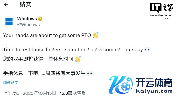 而在今天早上,微软官方在 X 平台发文,暗意未来将公布紧要音问。并表示:“你的双手行将‘带薪放假’,周四将有大事发生”。